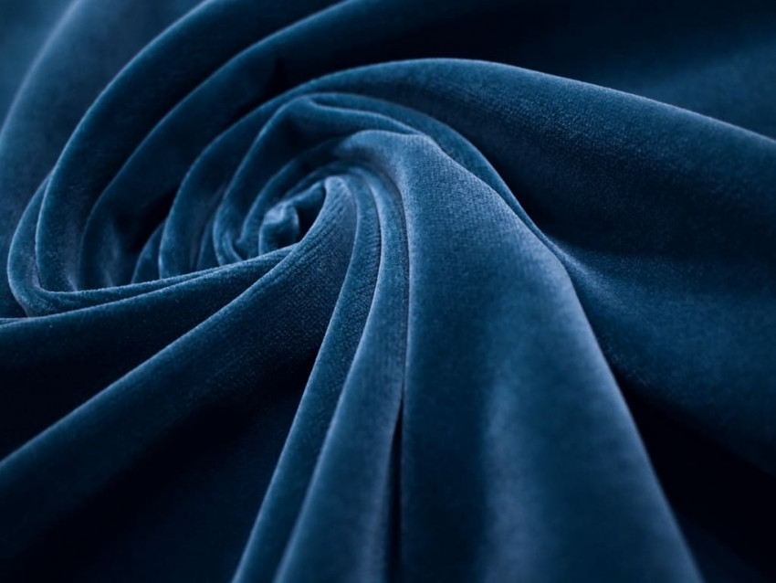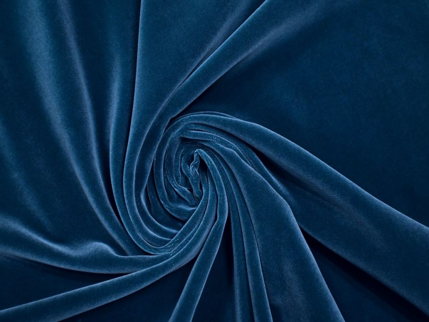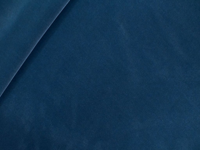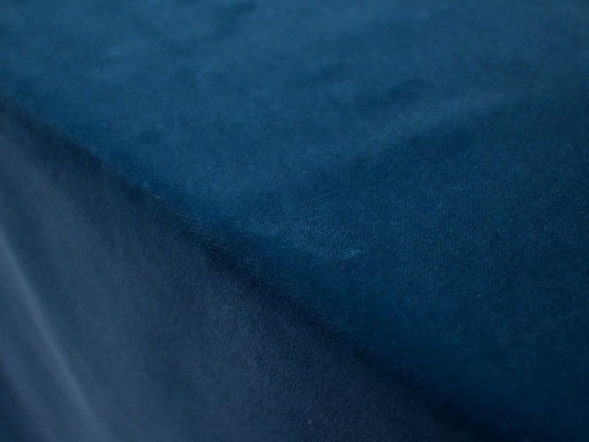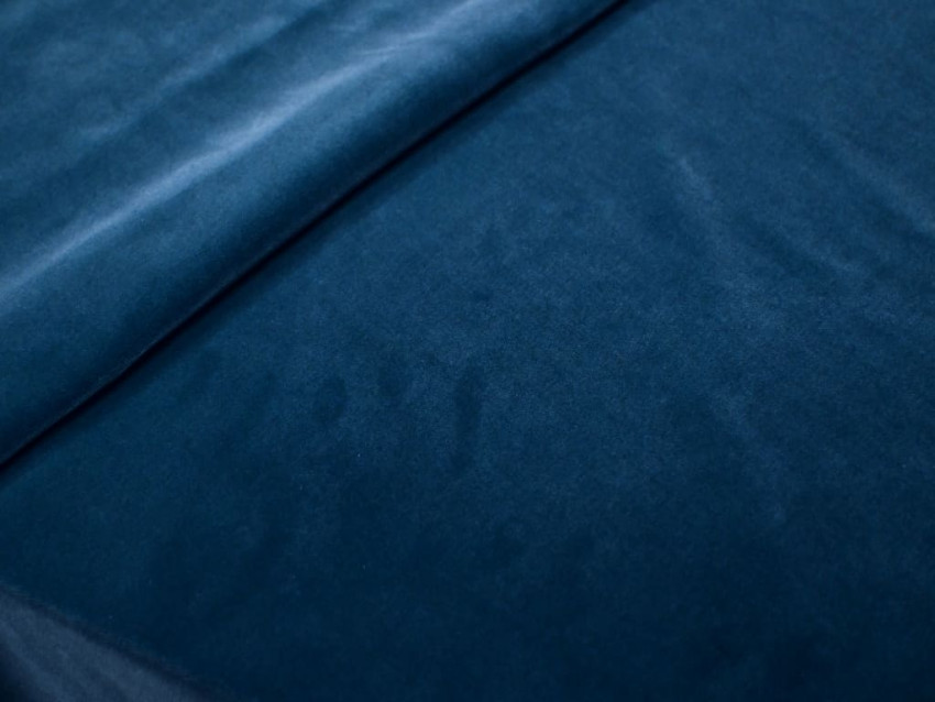 Terciopelo 100 % algodón de 150 cm en azul petróleo, pelo sedoso y estructura firme que mantiene volumen. Orillo con 4 hilos dorados: sello de calidad premium.