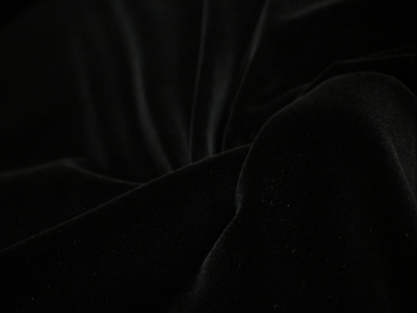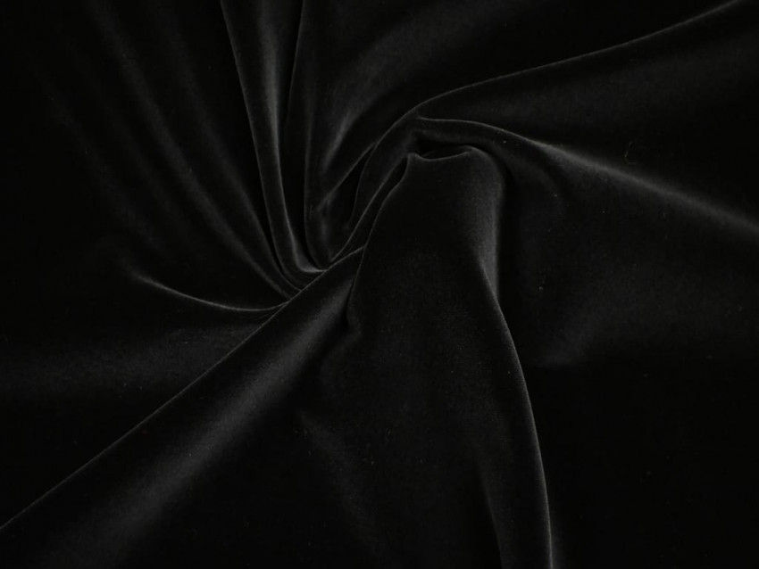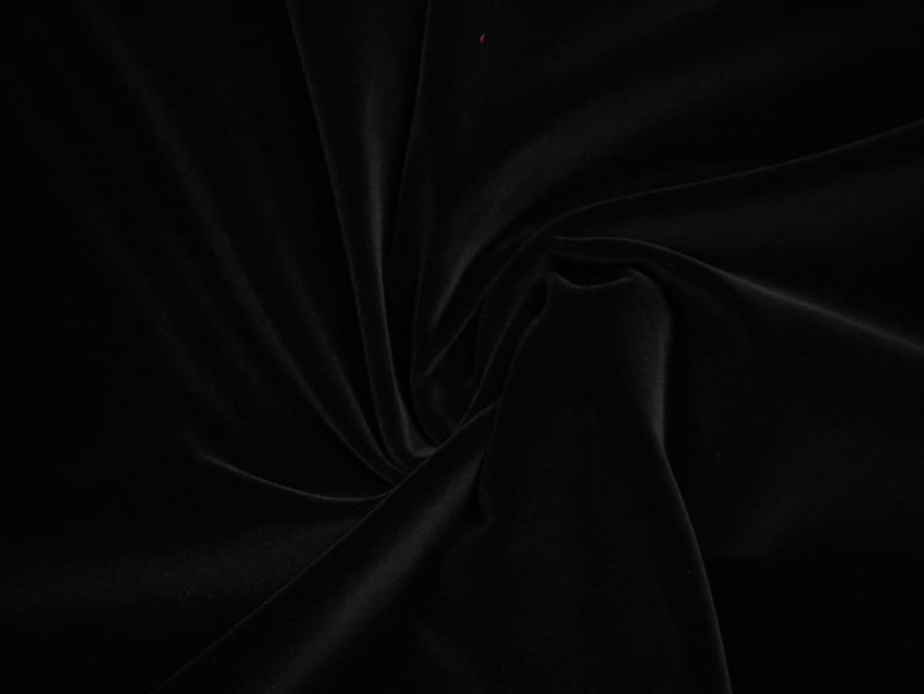 Terciopelo 100 % algodón de 150 cm en elegante color negro, pelo sedoso y estructura firme con volumen. Orillo con 4 hilos dorados, garantía de calidad premium.
