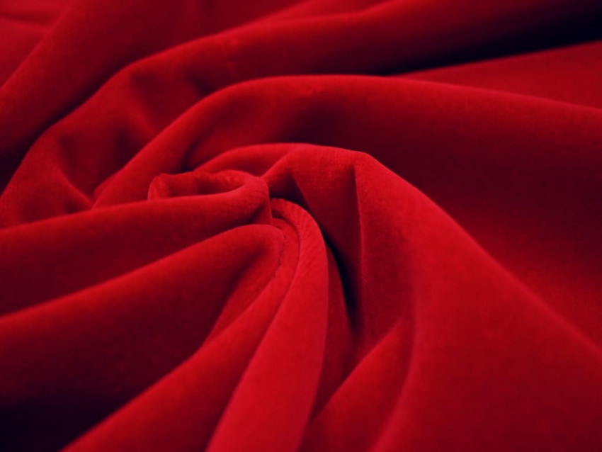 Terciopelo 100 % algodón de 150 cm en elegante color rojo, pelo sedoso y estructura firme con volumen. Orillo con 4 hilos dorados, garantía de calidad premium.