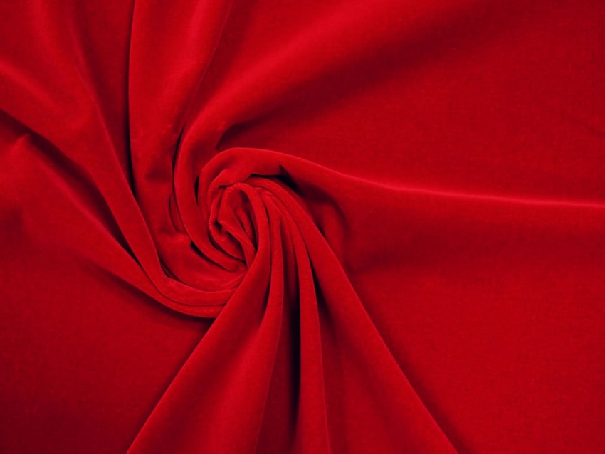 Terciopelo 100 % algodón de 150 cm en elegante color rojo, pelo sedoso y estructura firme con volumen. Orillo con 4 hilos dorados, garantía de calidad premium.