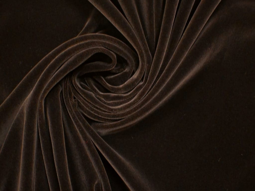 Terciopelo 100 % algodón de 150 cm en elegante color marrón, pelo sedoso y estructura firme con volumen. Orillo con 4 hilos dorados, garantía de calidad premium.