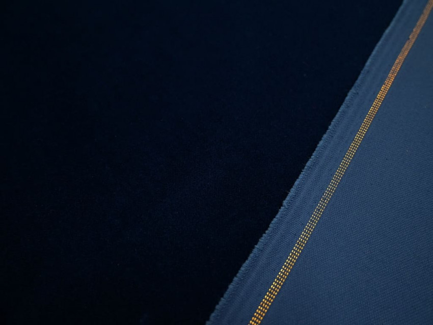 Terciopelo 100 % algodón de 150 cm en elegante color azul noche, pelo sedoso y estructura firme con volumen. Garantía de calidad con 4 hilos de oro.