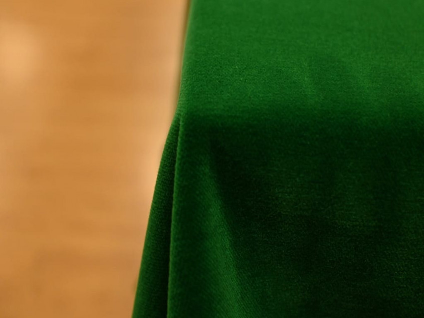Terciopelo 100 % algodón de 150 cm en elegante color verde, pelo sedoso y estructura firme con volumen. Orillo con 4 hilos dorados, garantía de calidad premium.