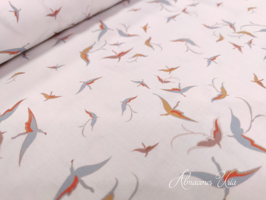 Popelín estampado de pájaros.
