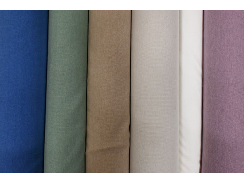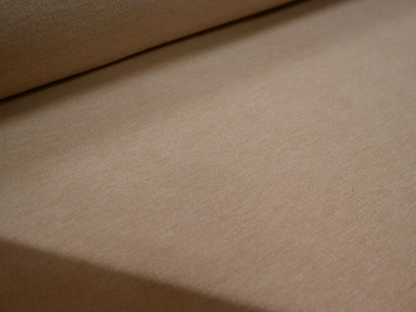 Tela de punto jersey canalé cepillado, con una textura suave y elástica.
