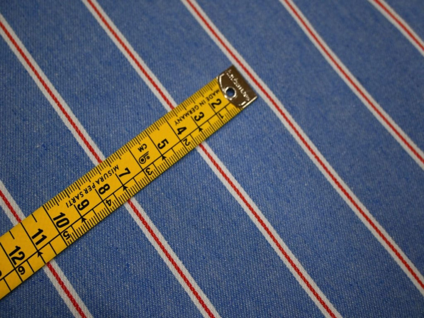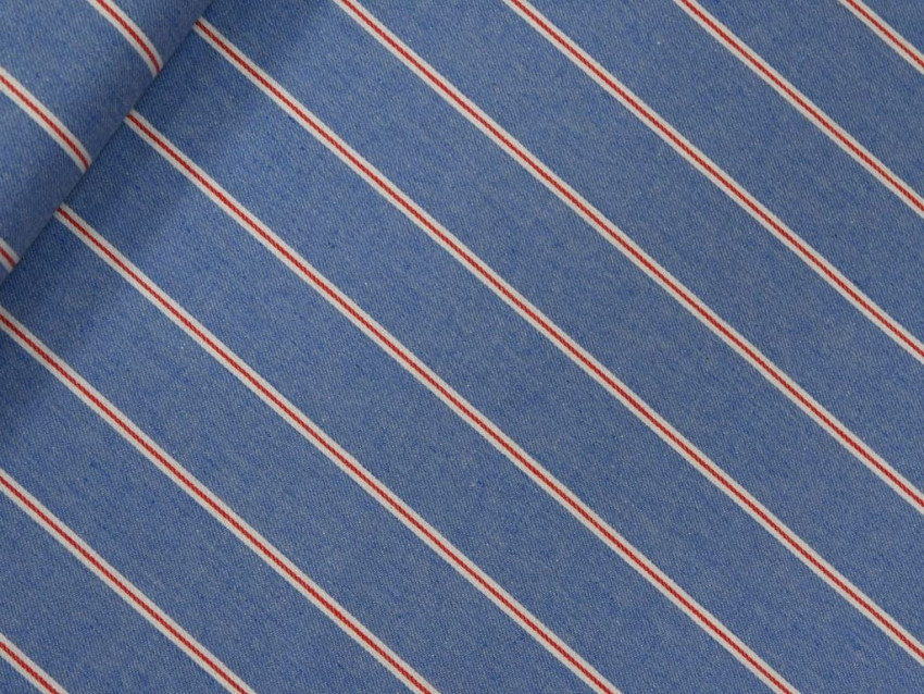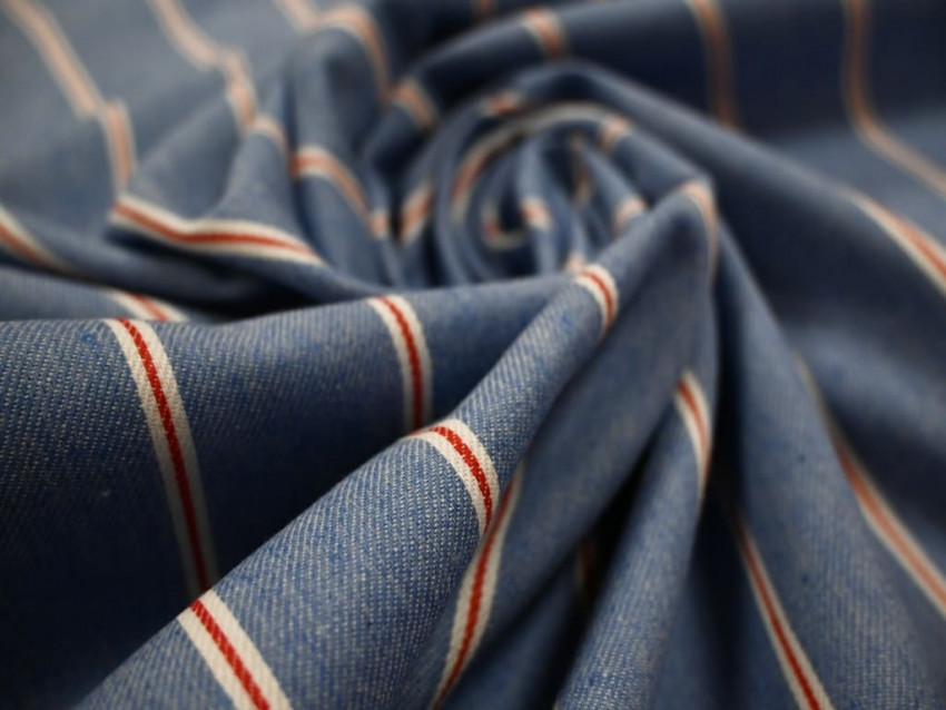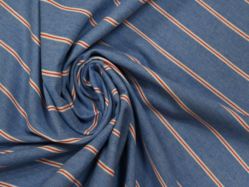Tela vaquera estampada con rayas, fabricada con un 80% algodón y 20% poliéster.