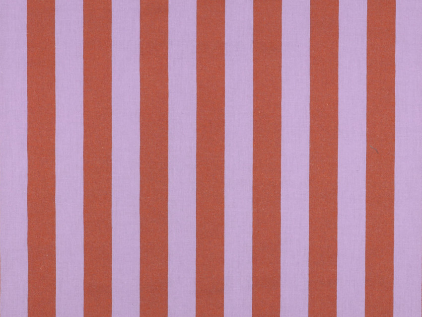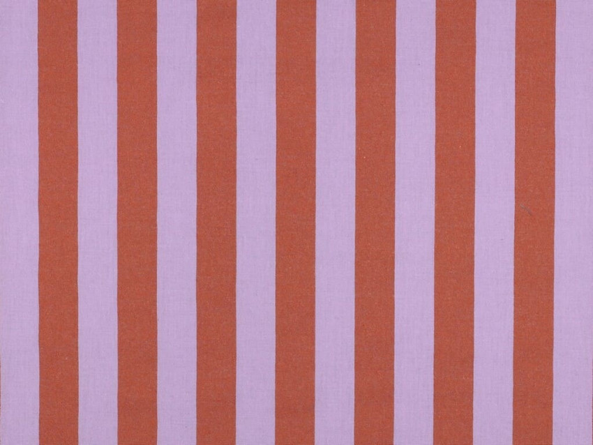 Las rayas verticales en tonos teja y lila evocan una estética muy actual, inspirada en el estilo mediterráneo y retro contemporáneo. Este tipo de tejido está en plena tendencia tanto en moda como en decoración, gracias a su versatilidad y aspecto natural.