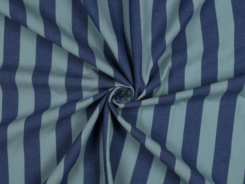 Tejido de algodón 100% con rayas tejidas en hilo de más de 2 cm. Con 135 g/m², ofrece ligereza y cuerpo, ideal para confección y decoración. Un diseño elegante en tonos azul y verde agua, muy actual y versátil.