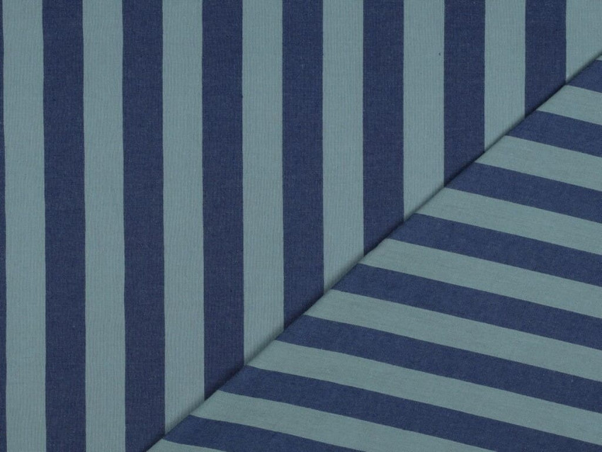 La combinación de azul con verde agua aporta frescura y serenidad, muy en línea con tendencias actuales inspiradas en el estilo náutico y natural. Las rayas anchas refuerzan su carácter visual, siendo ideales para prendas con personalidad o decoración contemporánea.