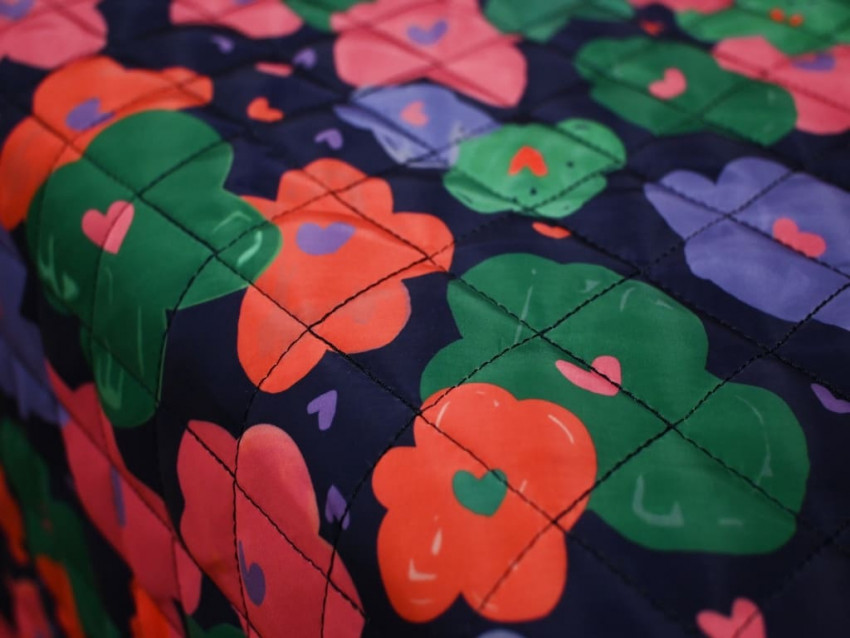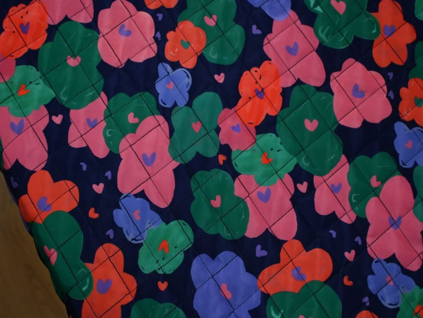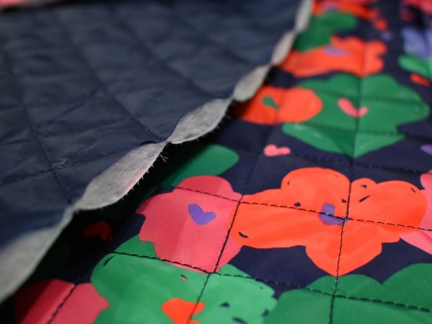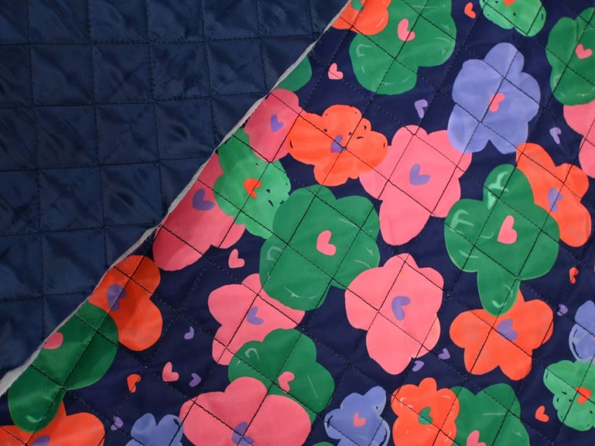 Tejido acolchado 100 % poliéster impermeable, 260 g/m², 140 cm de ancho, con forro en azul marino. Ligero y resistente, perfecto para crear abrigos, chalecos, bolsos y proyectos de decoración con acabado profesional.