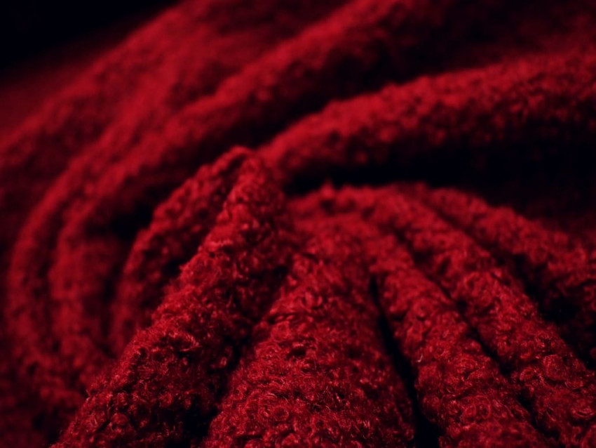 Elegante bouclé granate de 150 cm de ancho y 310 g/m², 100 % poliéster. Su textura rizada aporta volumen y calidez, ideal para confección de abrigo, chaquetas de estilo Chanel y prendas de temporada con caída estructurada y acabado exclusivo.