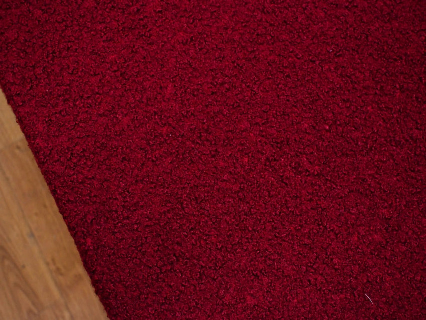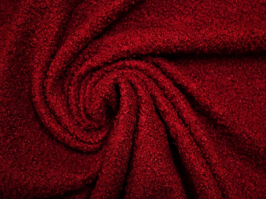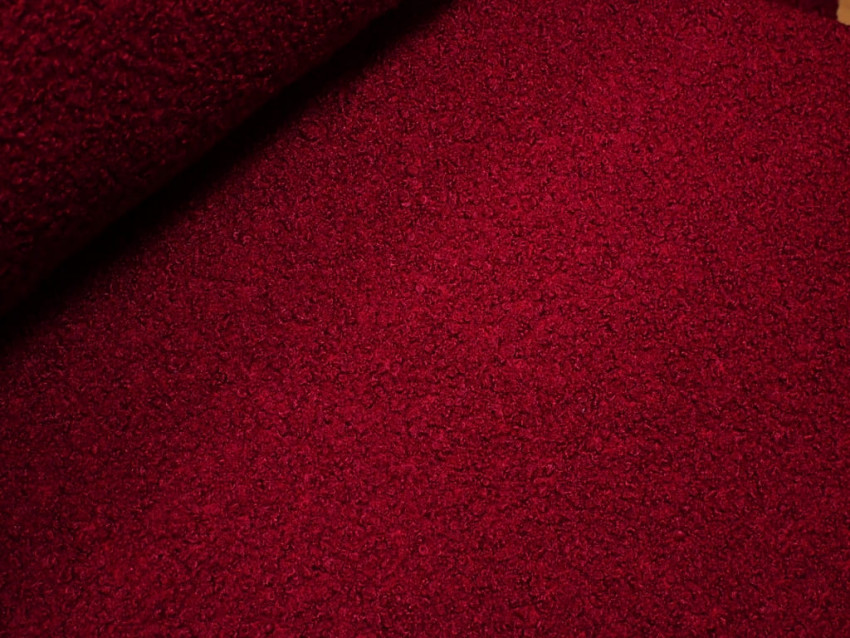 Elegante bouclé granate de 150 cm de ancho y 310 g/m², 100 % poliéster. Su textura rizada aporta volumen y calidez, ideal para confección de abrigo, chaquetas de estilo Chanel y prendas de temporada con caída estructurada y acabado exclusivo.