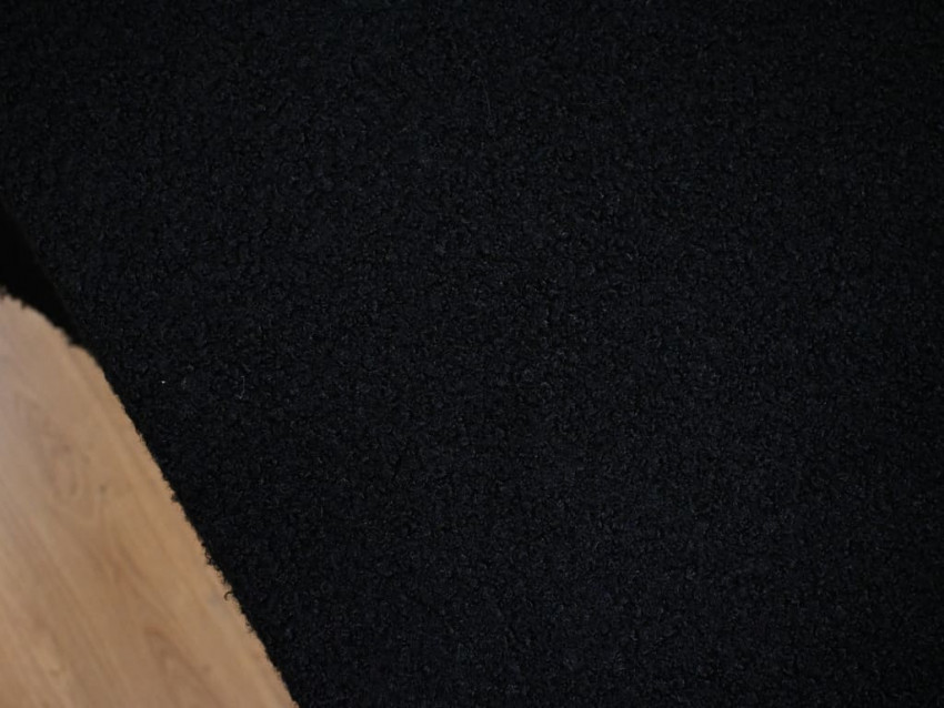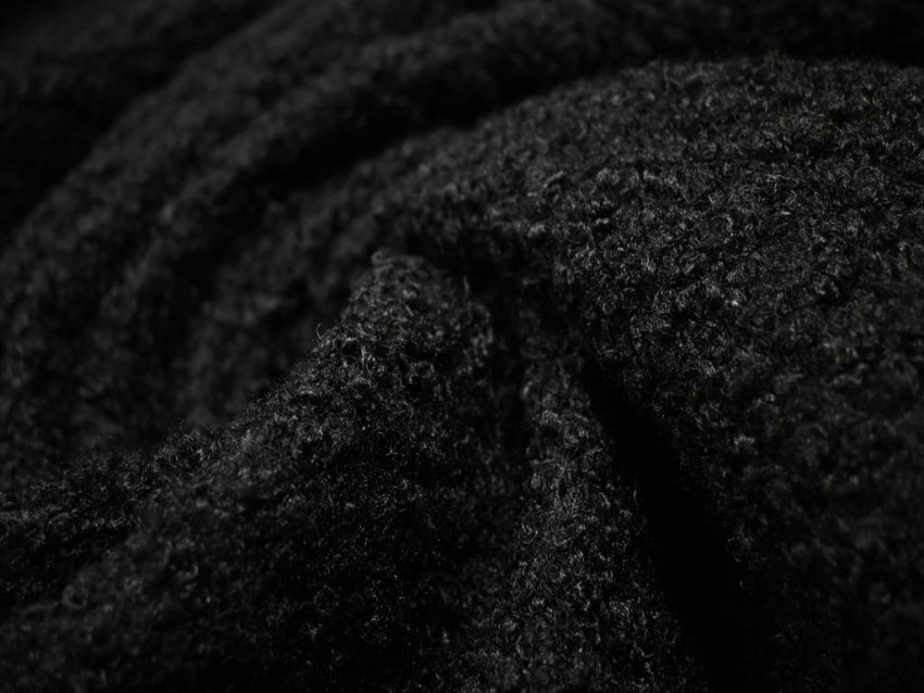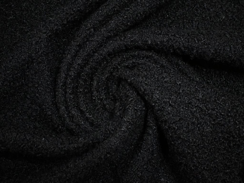Elegante bouclé negro de 150 cm de ancho y 310 g/m², 100 % poliéster. Su textura rizada aporta volumen y calidez, ideal para confección de abrigo, chaquetas de estilo Chanel y prendas de temporada con caída estructurada y acabado exclusivo.