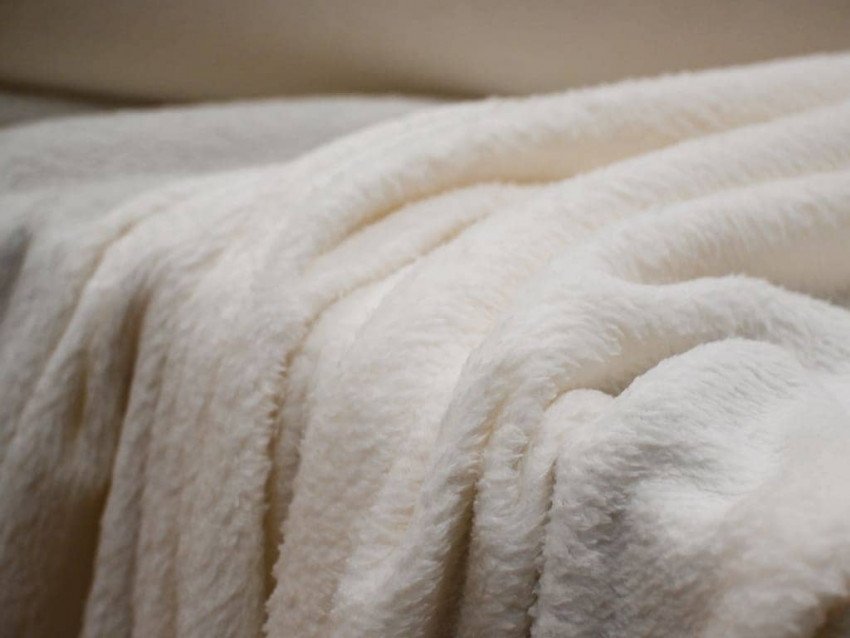Tejido coralina beige de tacto ultra suave y acabado elegante.