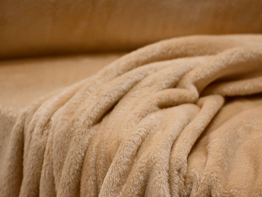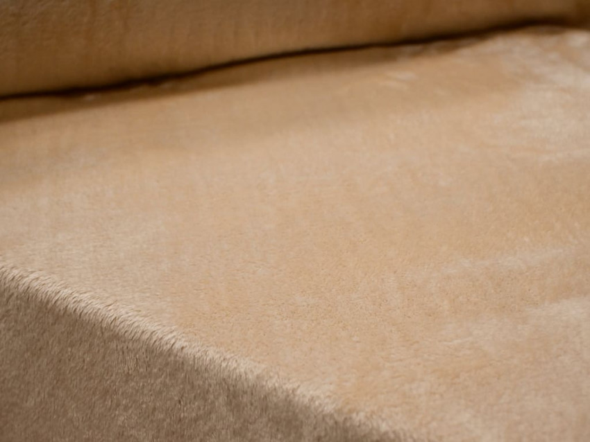 Tejido coralina arena de tacto ultra suave y acabado elegante.