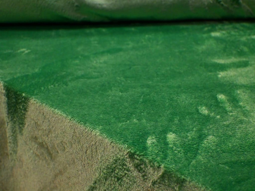 Tejido coralina verde de tacto ultra suave y acabado elegante.