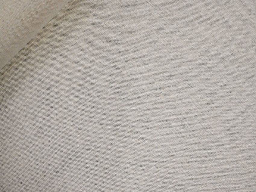 Este tejido es un lino rústico 100% natural, con un gramaje medio de 180 g/m² y ancho de 150 cm. Presenta una trama visible y ligeramente abierta, que realza su carácter artesanal. Su textura es seca y firme al tacto, con una caída natural y elegante, ideal para aplicaciones decorativas.