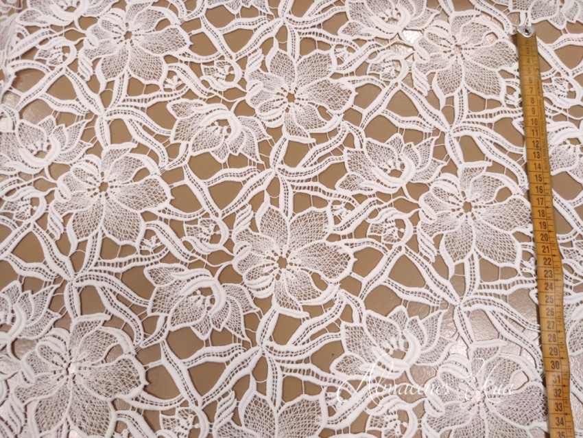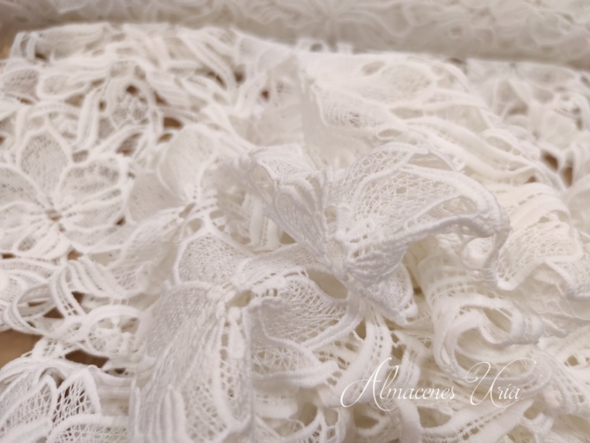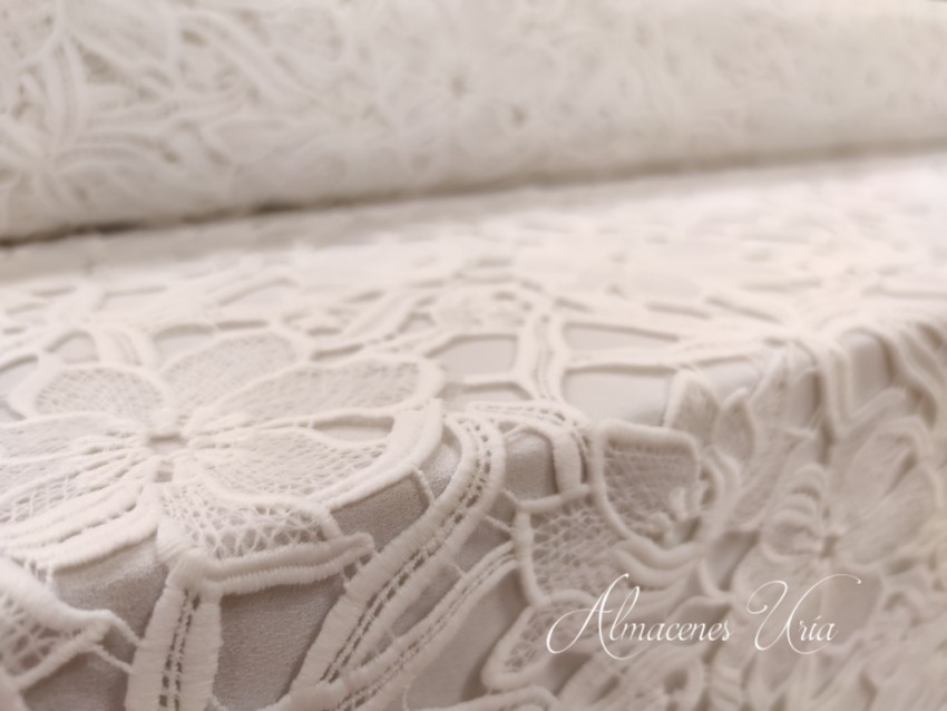 Guipur de gran calidad, con cuerpo, sin brillos, cómodo y de un tacto muy agradable.
