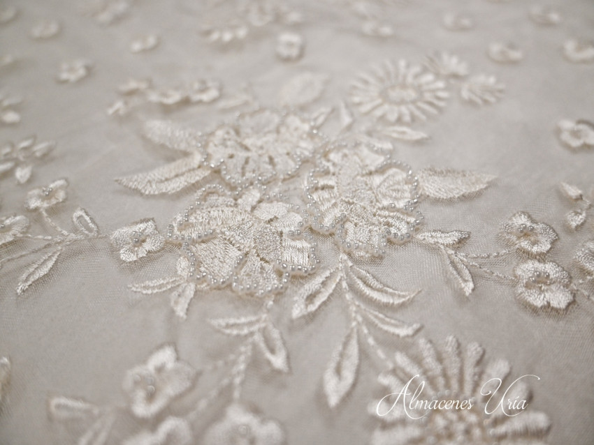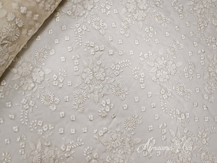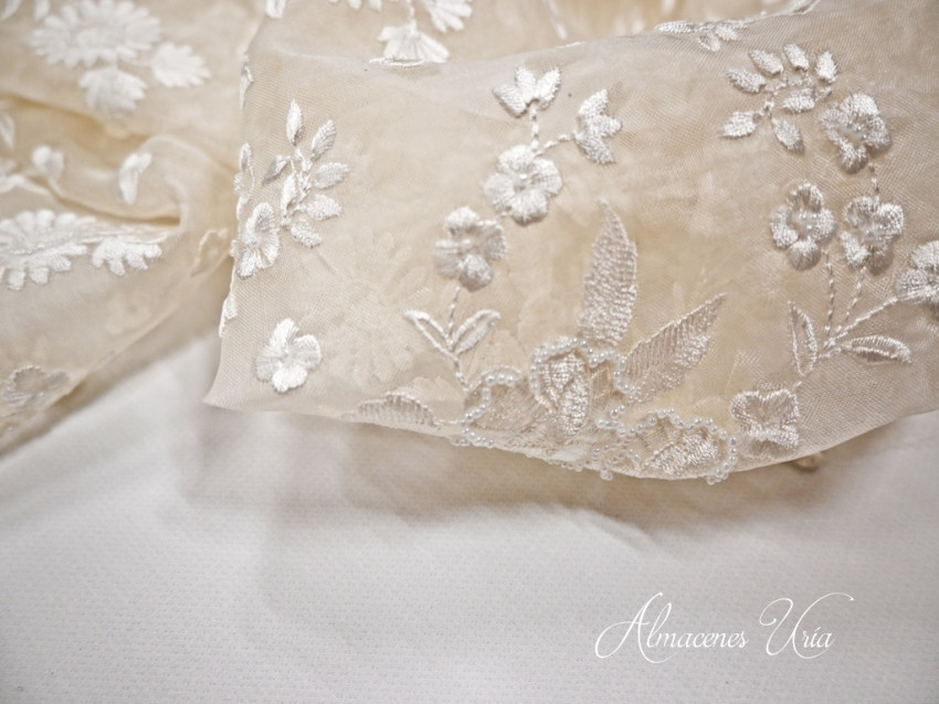 Organza bordada con detalles de pedrería en seda.