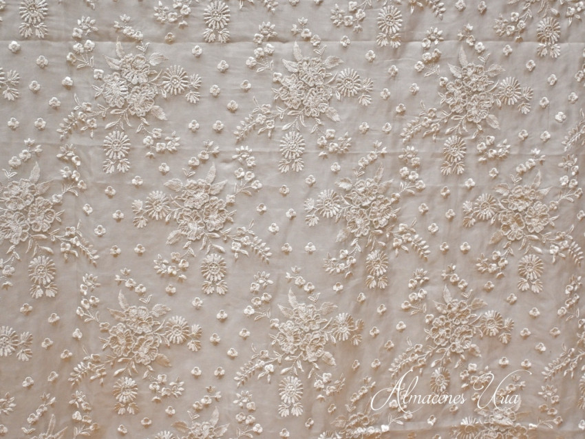 Tejido translúlido muy elegante perfecto para confección, en blanco roto de tacto muy suave para las prendas mas sofisticadas.