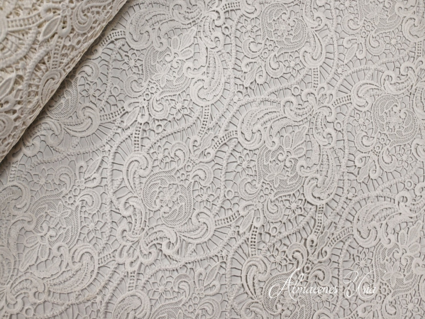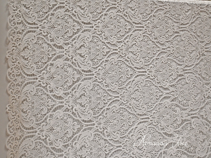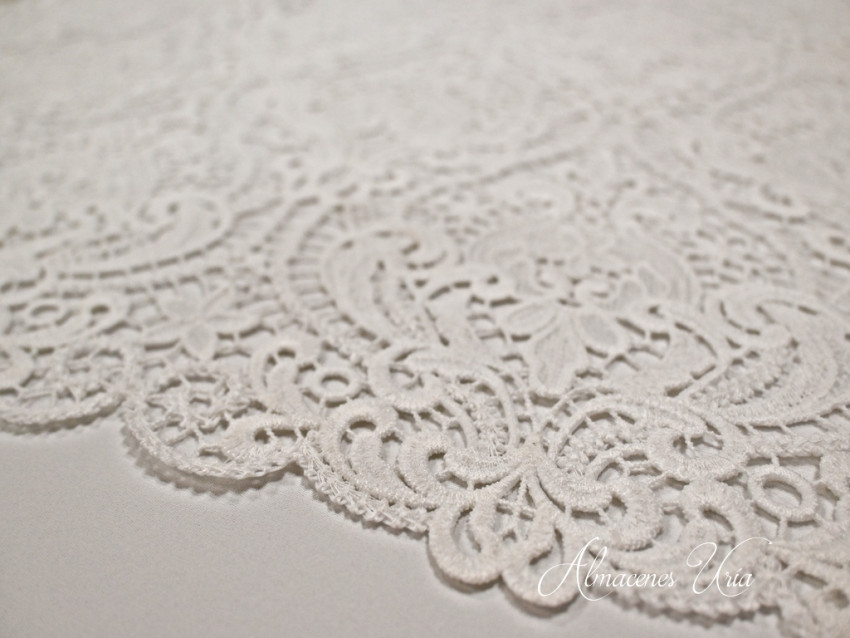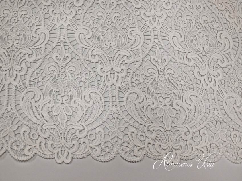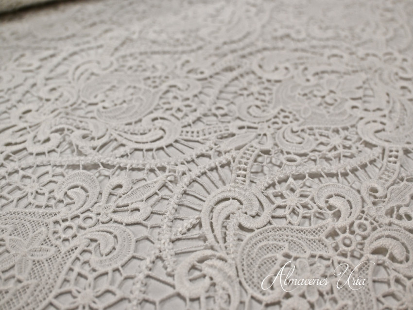 Guipur blanco grueso con caída y movimiento de alta costura.