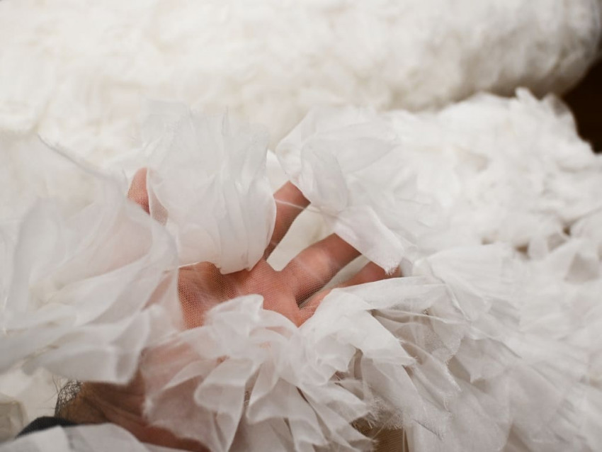 Este tejido es ideal para crear vestidos de novia únicos y sofisticados, aportando volumen, textura y elegancia a cada diseño.