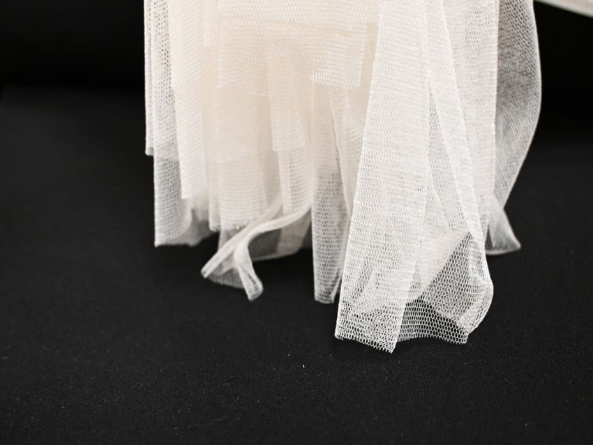 El tul sintético tiende a ser más rígido, con memoria estructural y brillo artificial. El tul de seda: