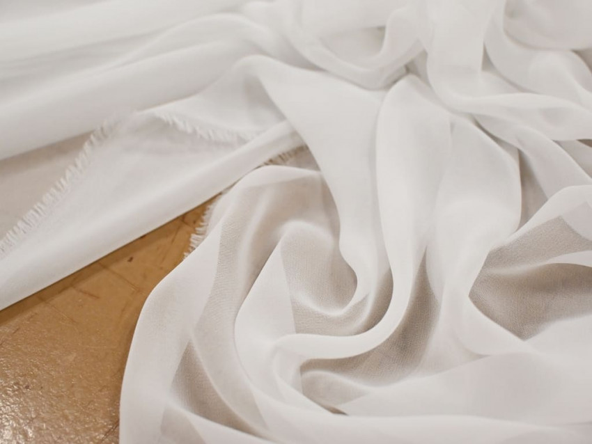 Muselina blanca de poliéster 100% con una calidad excepcional. Ligera (45 g/m²), vaporosa y con una sorprendente mano sedosa. Su caída fluida y su transparencia elegante la convierten en una opción ideal para prendas delicadas, superposiciones y confecciones etéreas.