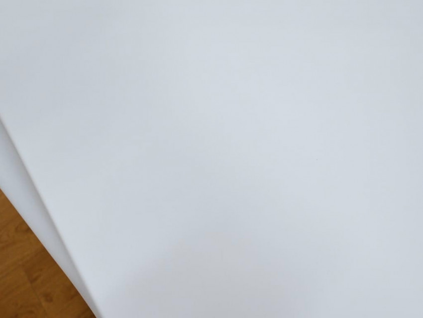 Doble crepé blanco nuclear de gran cuerpo (378 g/ml), 140 cm de ancho. Su composición (92% poliéster, 8% poliamida) le otorga estructura y caída elegante. Textura ligeramente granulada y opacidad total. Ideal para vestidos de novia y prendas de alta costura en blanco puro.