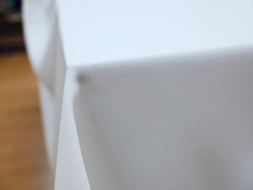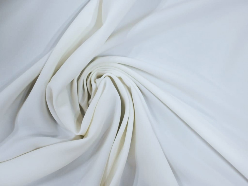 Este tejido doble crepé destaca por su tono blanco nuclear impecable, ideal para diseños nupciales y ceremoniales que buscan pureza cromática. Su densidad (378 g/ml) y estructura doble ofrecen una caída controlada, con cuerpo y estabilidad, mientras que la superficie presenta el característico grano fino del crepé, con acabado mate y sofisticado.