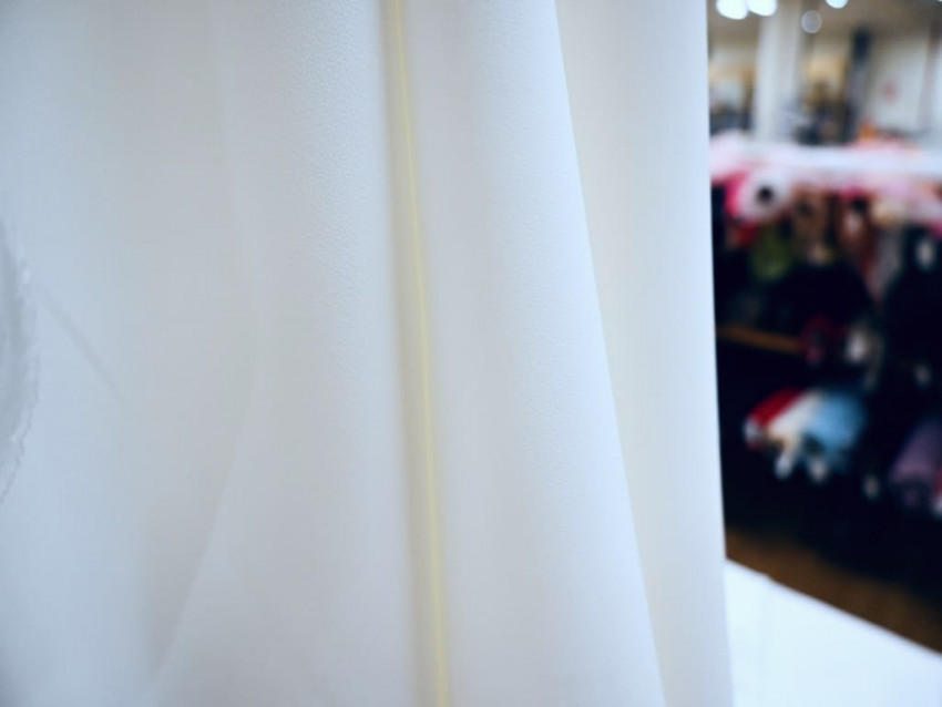 En comparación con nuestro doble crepé blanco roto, esta versión ofrece un blanco más luminoso y puro, manteniendo el mismo cuerpo y estructura. Combina perfectamente con muselinas o encajes de tonos blancos para crear contrastes de textura sin alterar la uniformidad del color.