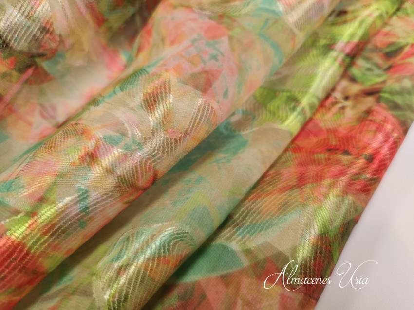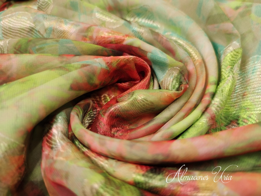 Gasa devorada translúcida con caída vaporosa, extra suave y acabado impecable.
