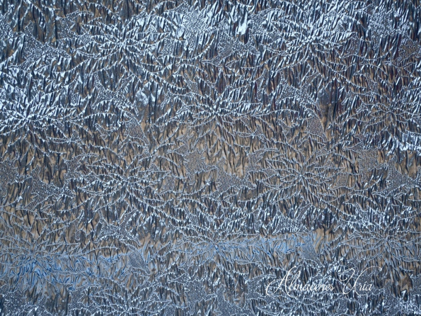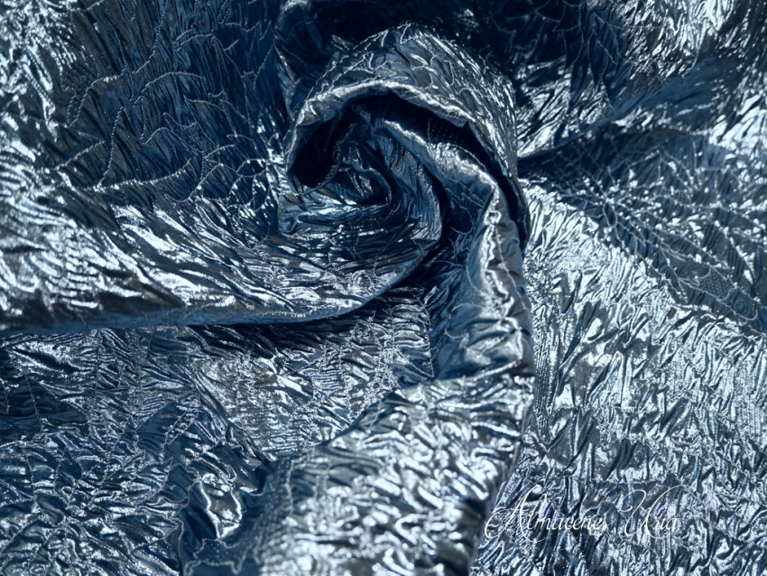 Jacquard de seda con acabado en lamé con rigidez, fino y tacto agradable.