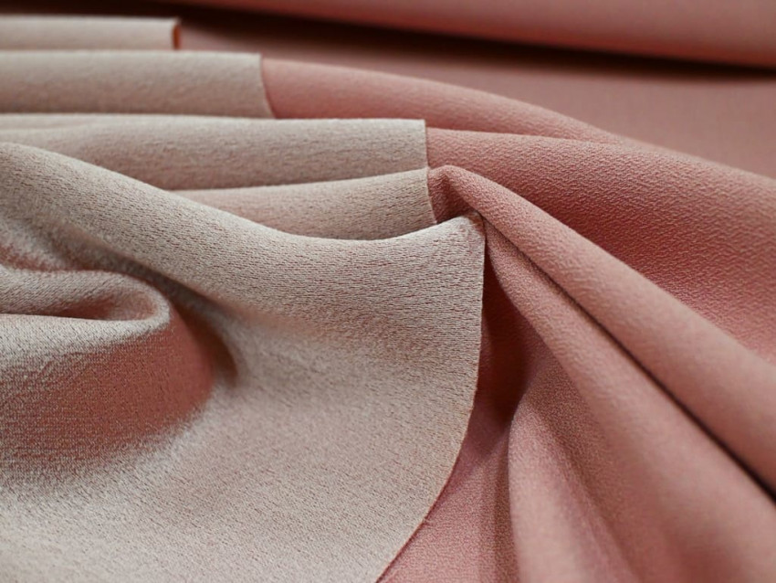 Crepé de raso en rosa palo con acabado satinado suave, gramaje estructurado y caída envolvente.