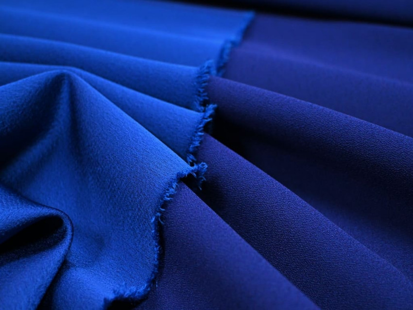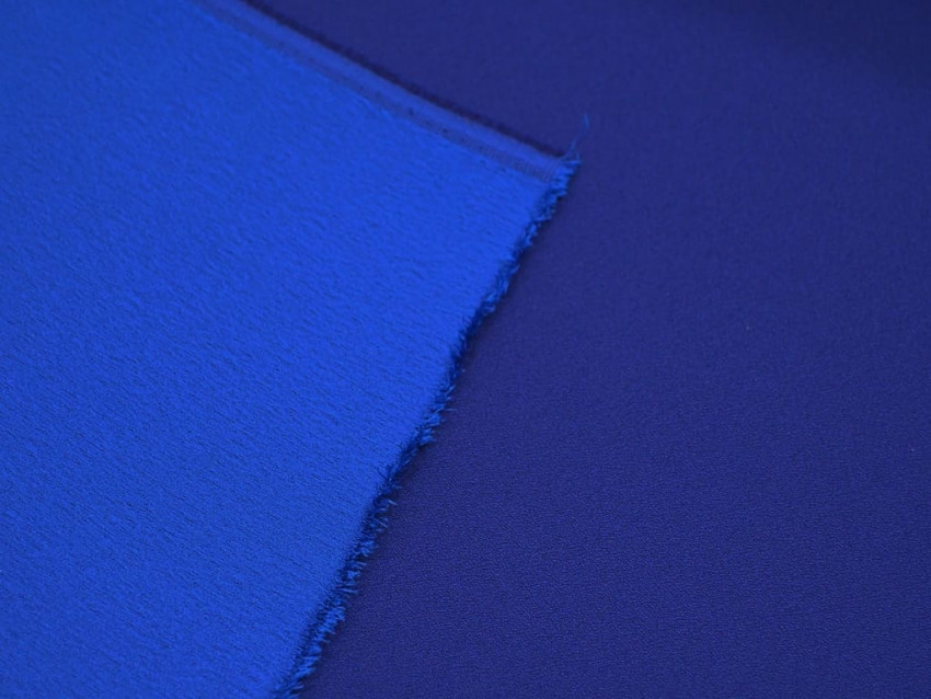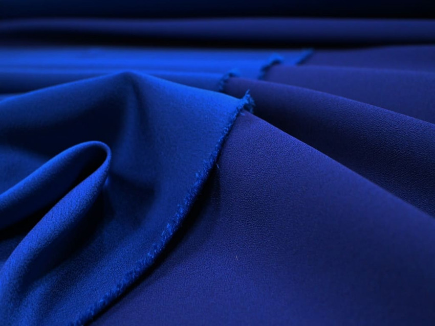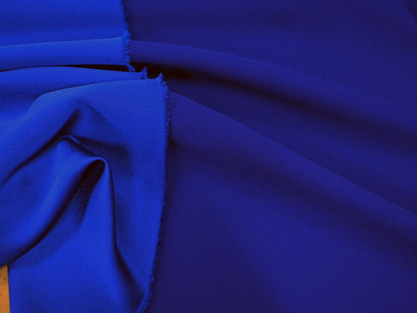 Crepé de raso en tono azul royal, con brillo sutil y caída estructurada.