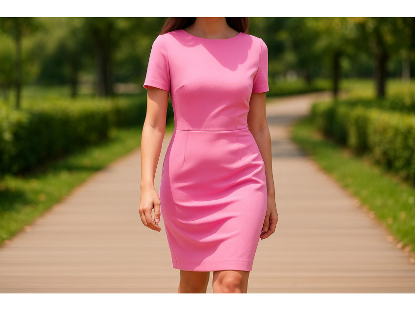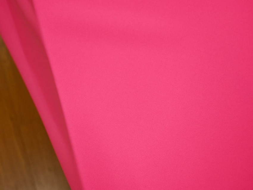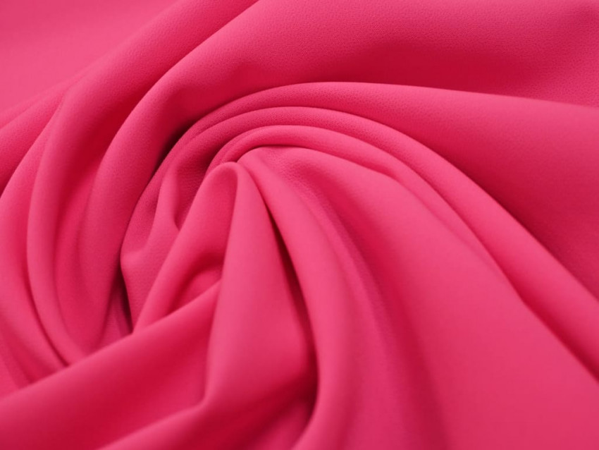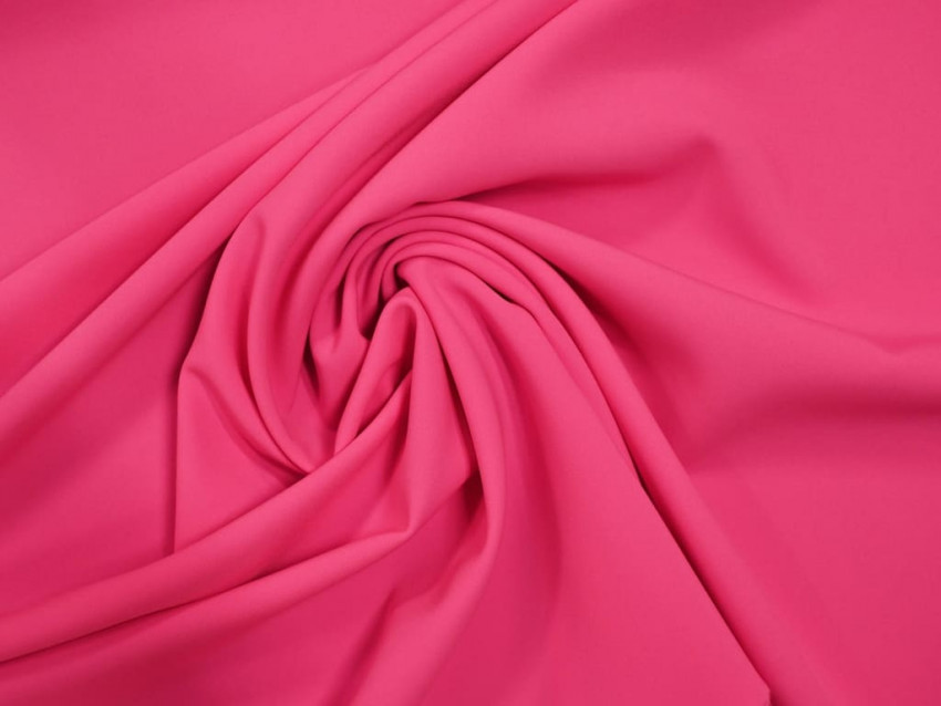 Crêpe doble rosa chicle (378 g/ml, 140 cm) con caída media y tacto firme. Perfecto para vestidos frescos, monos veraniegos y trajes sastre pop; opaco y anti-arrugas.