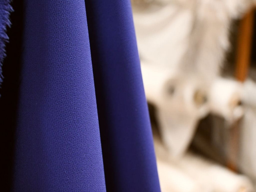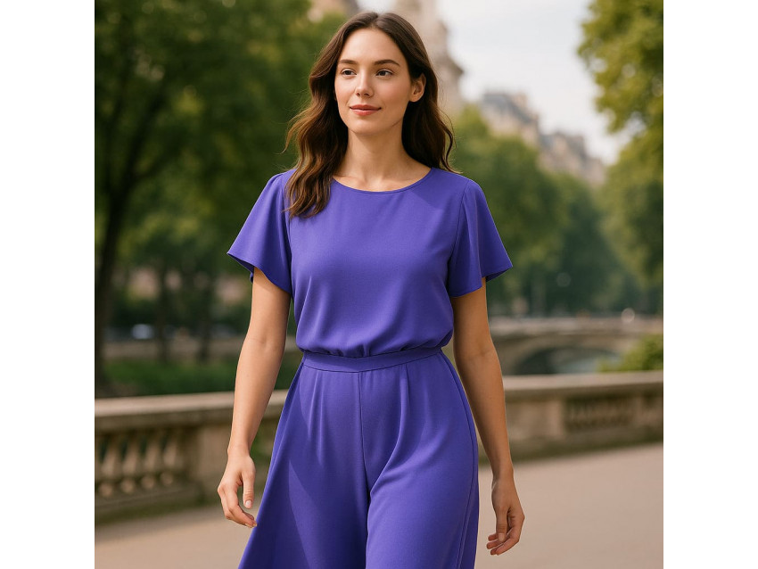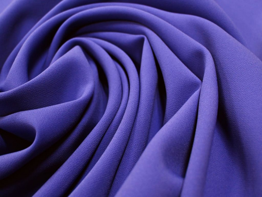 Crêpe doble lavanda ultravioleta (378 g/ml, 140 cm) con caída media y tacto firme. Perfecto para vestidos, monos y trajes sastre con carácter; opaco y anti-arrugas.