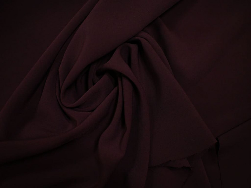 Crepé doble de 92 % poliéster / 8 % poliamida, gramaje 378 g / ml (≈ 270 g / m²) y ancho 1,40 m. Tono ciruela tostado con matiz chocolate; caída fluida y opacidad total. Perfecto para prendas formales que necesiten cuerpo sin perder movimiento.