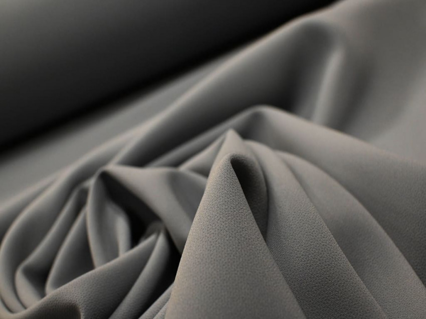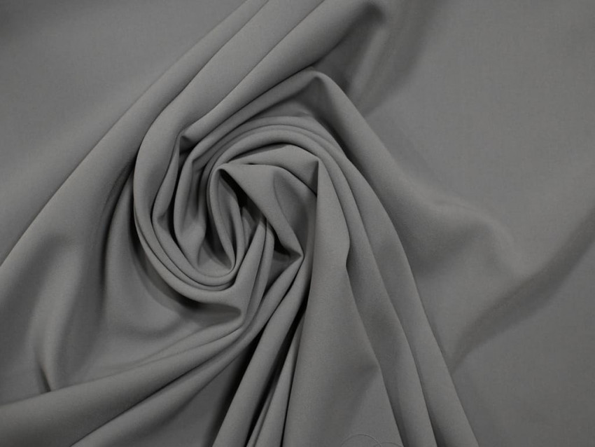 Crepé doble de 92 % poliéster / 8 % poliamida, gramaje 378 g / ml (≈ 270 g / m²) y ancho 1,40 m. Tono gris oscuro; caída fluida y opacidad total. Perfecto para prendas formales que necesiten cuerpo sin perder movimiento.