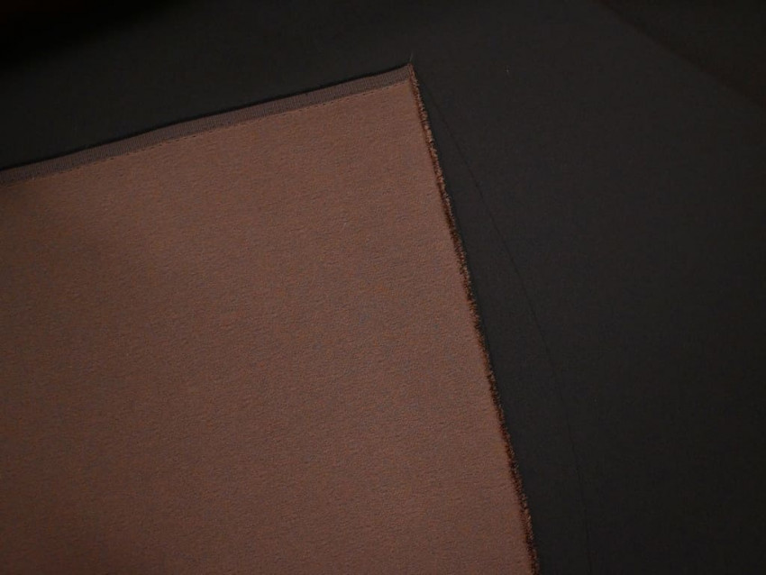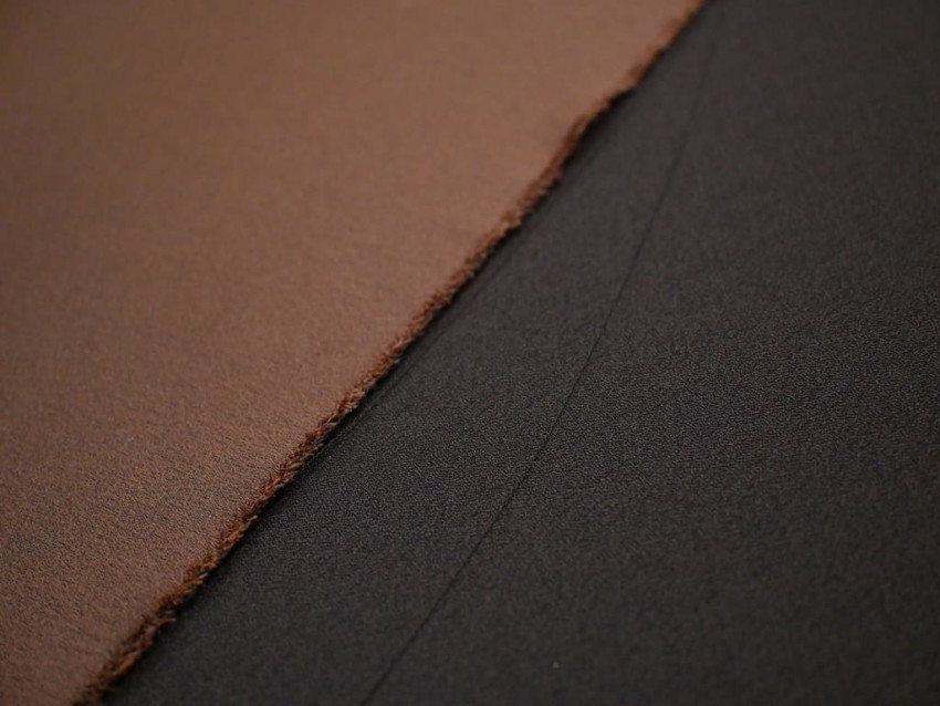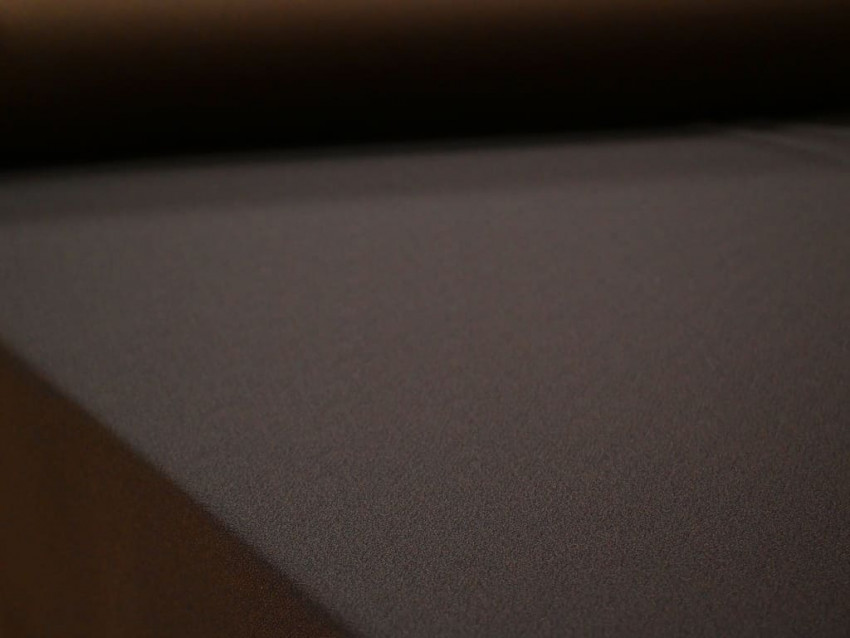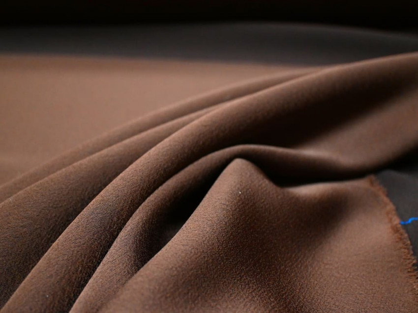 Este crepé de raso en color chocolate destaca por su equilibrio perfecto entre fluidez, cuerpo y sofisticación. Se trata de una tela versátil, de tacto muy agradable y acabado satinado por una cara, mientras que la otra presenta una textura más mate con un ligero efecto granulado típico del crepé.