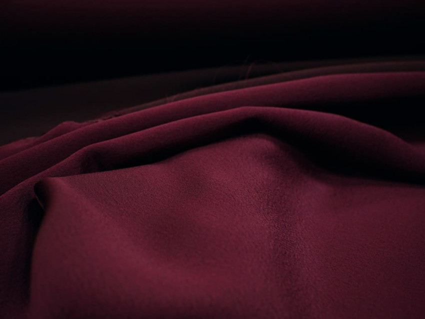 Este crepé de raso en color burdeos destaca por su equilibrio perfecto entre fluidez, cuerpo y sofisticación. Se trata de una tela versátil, de tacto muy agradable y acabado satinado por una cara, mientras que la otra presenta una textura más mate con un ligero efecto granulado típico del crepé.
