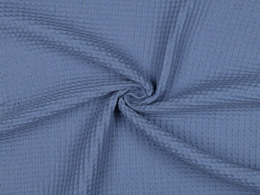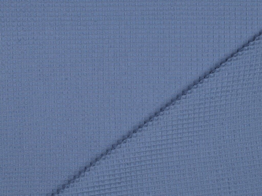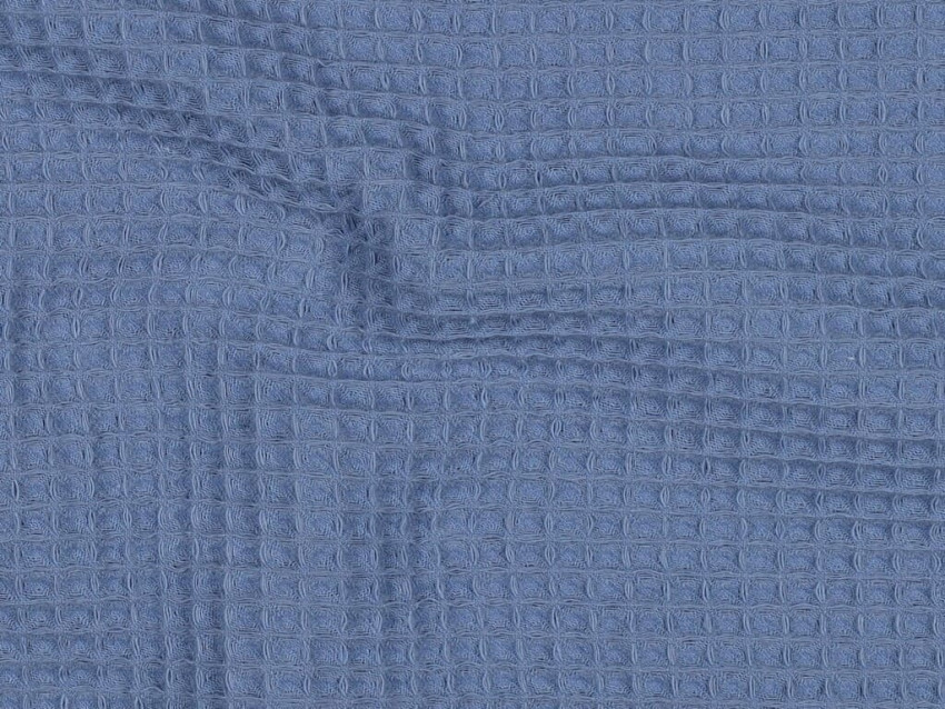 Tela waffle azul de algodón 100% con textura panal, gramaje medio (250 g/m²) y tacto suave. Ideal para toallas, ropa cómoda, decoración o proyectos DIY. Natural, funcional y con un tono fresco y versátil.