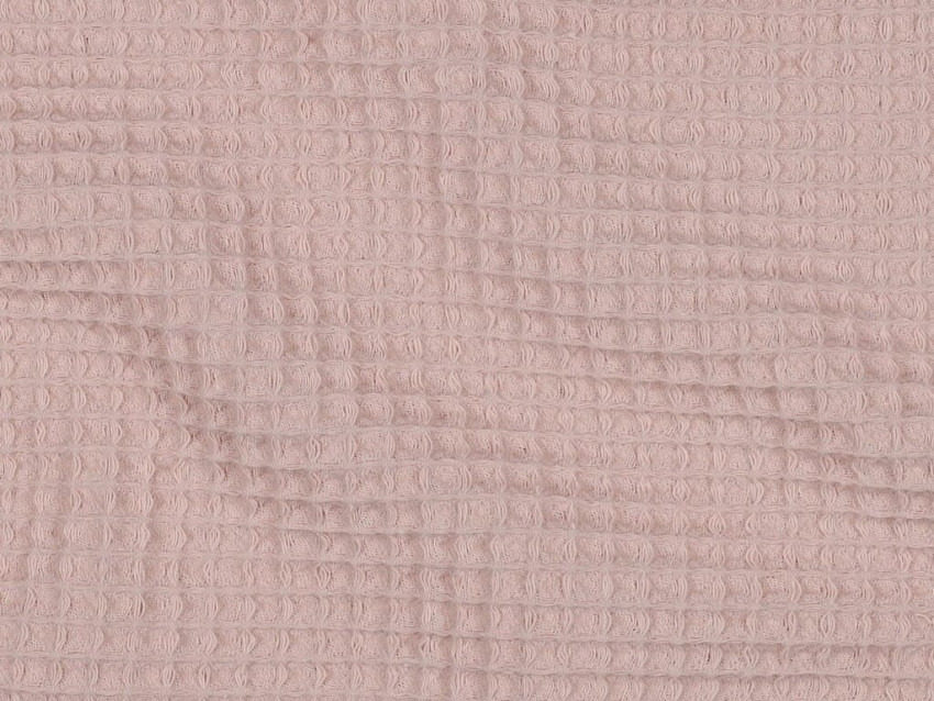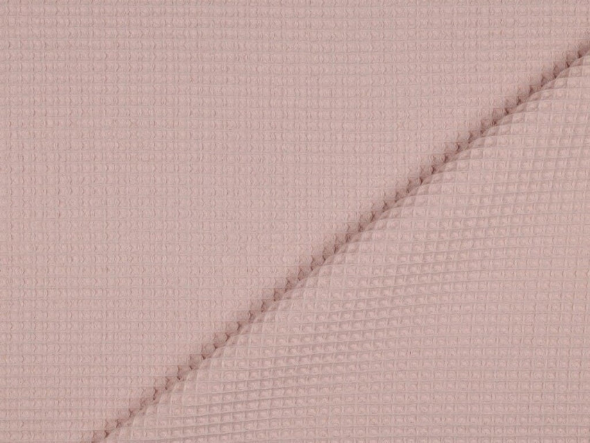 Tejido waffle 100% algodón en color rosa bebé, dulce, suave y con textura gofrada. Ideal para confección infantil, hogar o accesorios delicados.