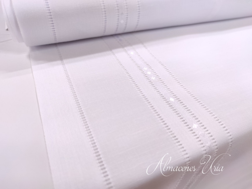 Tendina de 60 centímetros de ancho, con jaretón de 2.5cm a ambos lados con vainica.