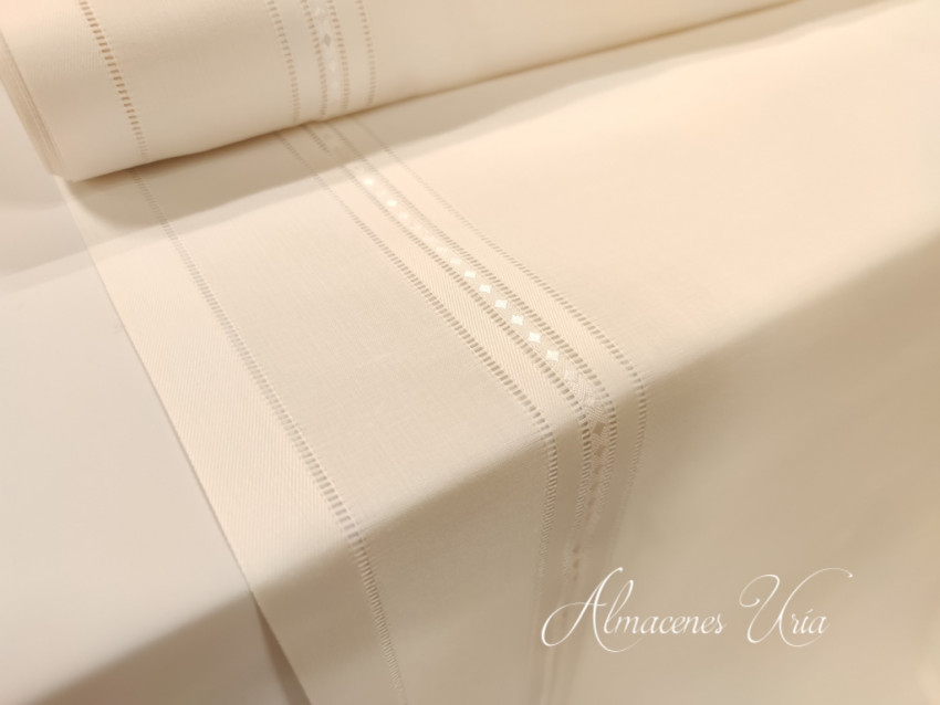 Tejido translúcido con vainicas a lo largo.