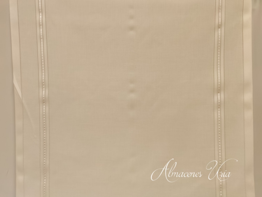 Tendina de 80 centímetros de ancho, con jaretón de 2.5cm a ambos lados con vainica.