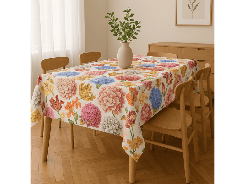 Mantelería con estilo floral alegre y sofisticado.
