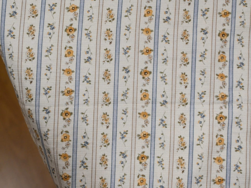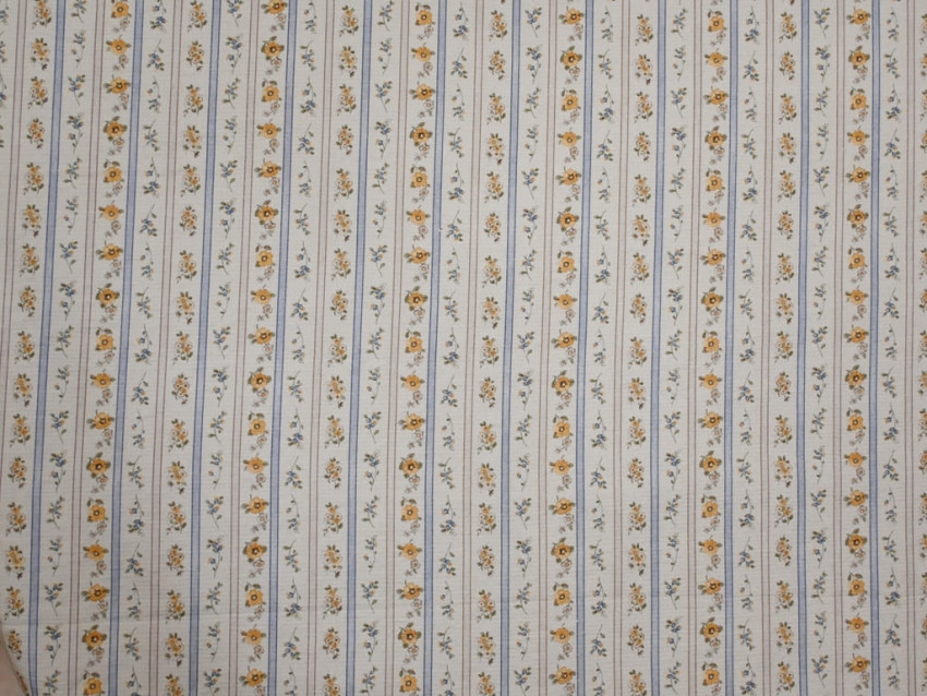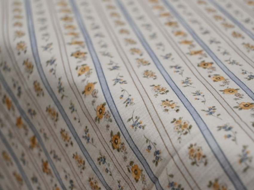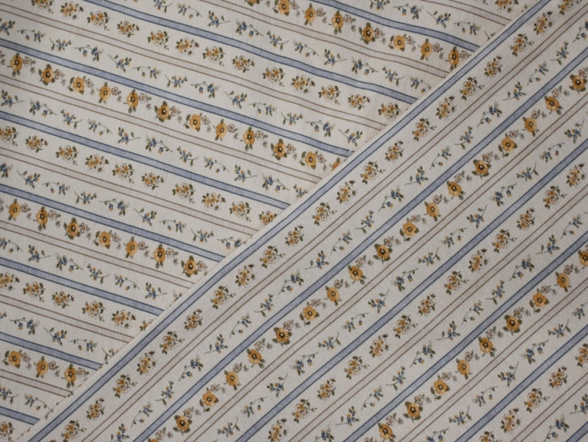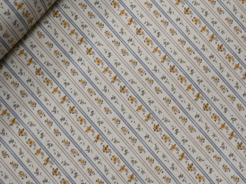 Diseño | Rayas de 1,5 cm con ramilletes florales ocre y azul |