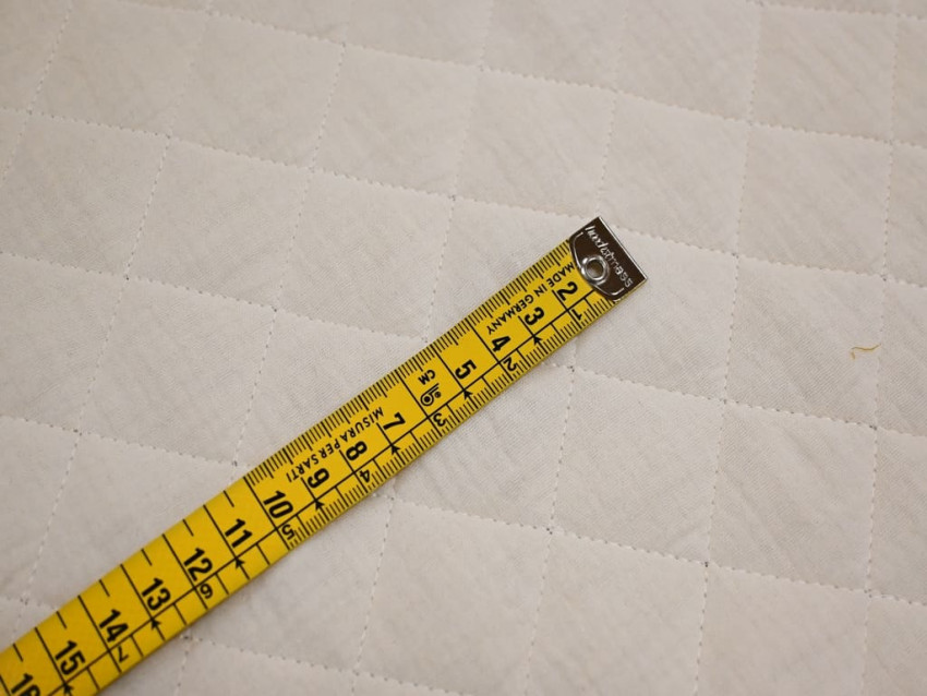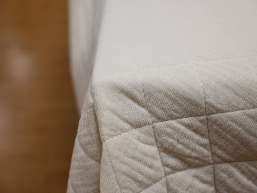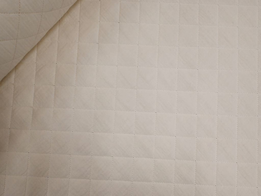 Esta tela de muselina acolchada combina la suavidad natural del algodón con un acolchado mullido ideal para proyectos de abrigo. Con un gramaje de 350 g/m² y un ancho de 135 cm, presenta una estructura de cuadros cosidos que mantiene estable el relleno y evita desplazamientos con el uso o lavado. El tono blanco roto le aporta una estética cálida, neutra y combinable.