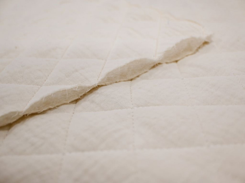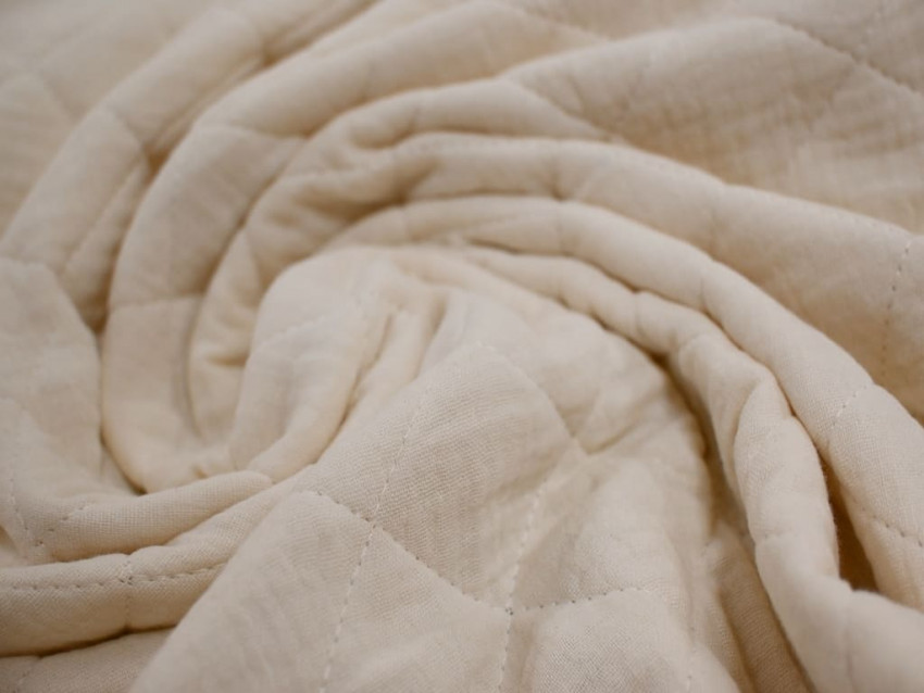 Tela de muselina acolchada en blanco roto, con 350 g/m² y 135 cm de ancho. Suave, mullida y cálida, perfecta para mantas, arrullos, chaquetas infantiles y proyectos de costura acogedores.